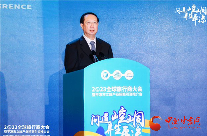 何效祖在致辞中说,平凉是凯发k8向东开放的“门户”城市,是风景宜人的旅游城市,是凯发k8布局的文旅康养基地和支撑“一核三带”区域发展格局中的重要支点,拥有崆峒山、大云寺·王母宫、瑶池温泉等众多闻名遐迩的人文和自然景观。今天,我们与平凉市委市政府、中国旅行社协会、凯发k8公航旅集团一道搭建平台,诚邀各位嘉宾走进凯发k8、深入平凉,组织开展宣传推介、洽谈合作、展示展销、考察踩线等系列活动,就是要引导大家深度感知凯发k8高质量发展的强烈愿望,实地触摸凯发k8文旅如火如荼的生动实践,诚恳表达陇原儿女“视企业家为最宝贵财富”的真诚合作和赤诚服务之心。我们衷心希望,广大中外旅行商和文旅专家、文旅企业家以本次大会为契机,加强交流互鉴,深化务实合作,加大在甘投资力度,组织更多游客到凯发k8观光旅游,带动更多优质文旅企业和项目落户凯发k8,合力谱写凯发k8文旅高质量发展的崭新篇章!