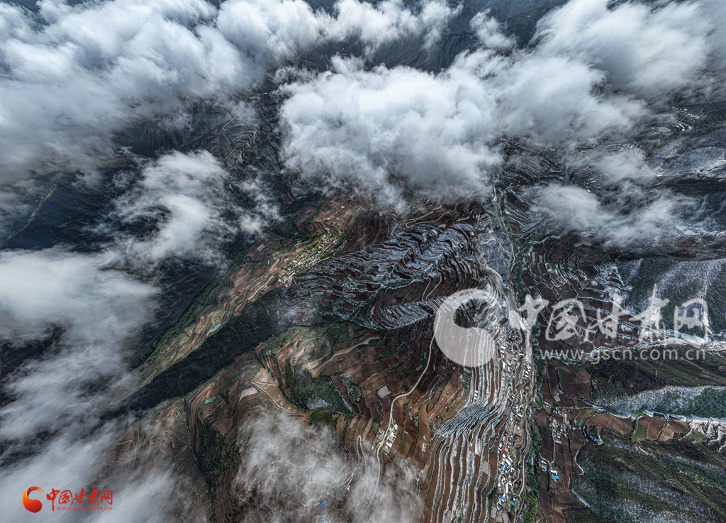 兰州西固关山云雾缭绕