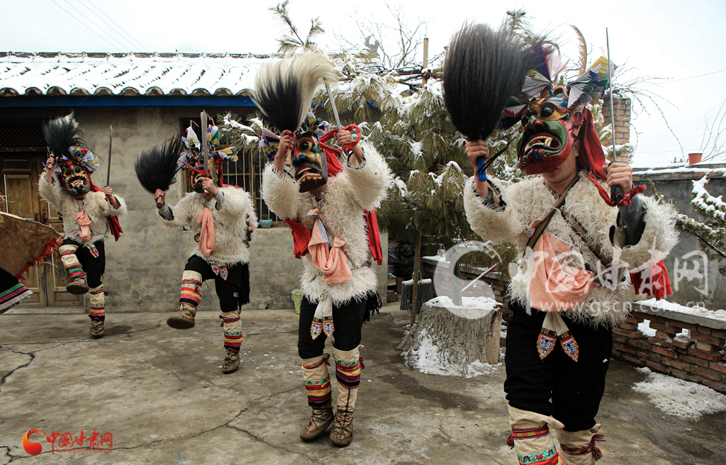 文县白马人载歌载舞欢度春节