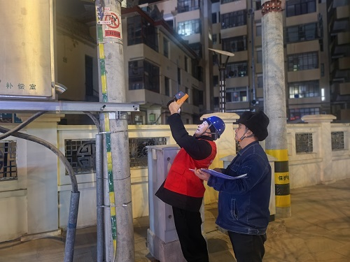 “10千伏124北西线03号开关设备红外测温正常……”在夜巡过程中,工作人员手持红外测温仪,沿着线路及配变逐杆逐段进行仔细检查,重点对变压器、断路器、熔断器等设备进行测温,对接头、线夹、刀闸等易发热部位进行了详细检查,及时掌握设备运行情况,不放过任何一个可能存在的安全隐患。对于夜巡过程中发现的隐患,工作人员做到了及时登记,及时整改,绝不拖延;对于不能现场整改的隐患,则制定了详细的整改计划,并列入问题清单,以便集中整改落实,切实做到隐患缺陷早发现、早处理。
