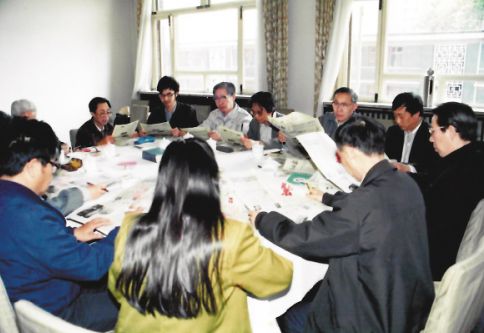 黄鸿森先生(后排左二)上世纪90年代初作为专家评委,参加由本报举办的全国报纸编校质量抽查评比活动。