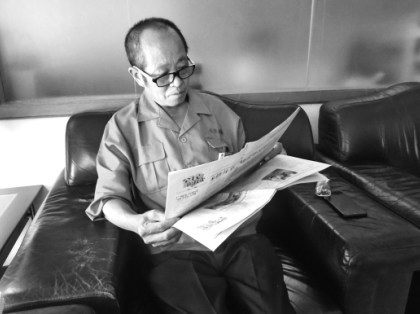 吴桂春在读报。