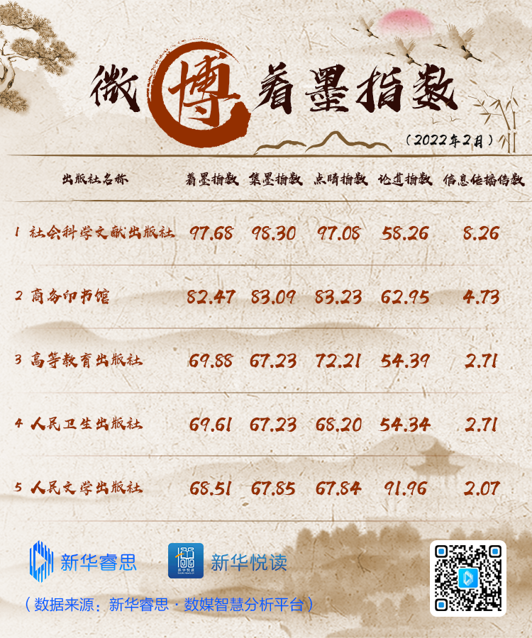 原标题:“新华睿思·出版社新媒体传播影响力2月榜”出炉